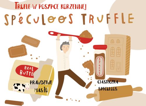 Nasza trufla z posypką korzenną jest solidna, a jednocześnie miękka jak masło. Połączenie kruszonki speculoos, kremowej czekolady, prawdziwego masła i mnóstwa miłości. To królowa słodyczy. Trufle czekoladowe powstały w wyniku pomyłki pewnego praktykanta, który pobierał nauki u słynnego francuskiego mistrza