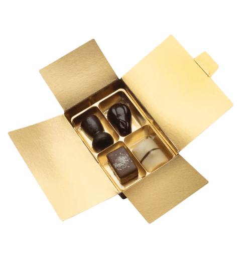 Klasyczna czerwona balotynka, która skrywa w swoim wnętrzu 4 pyszne belgijskie czekoladki.