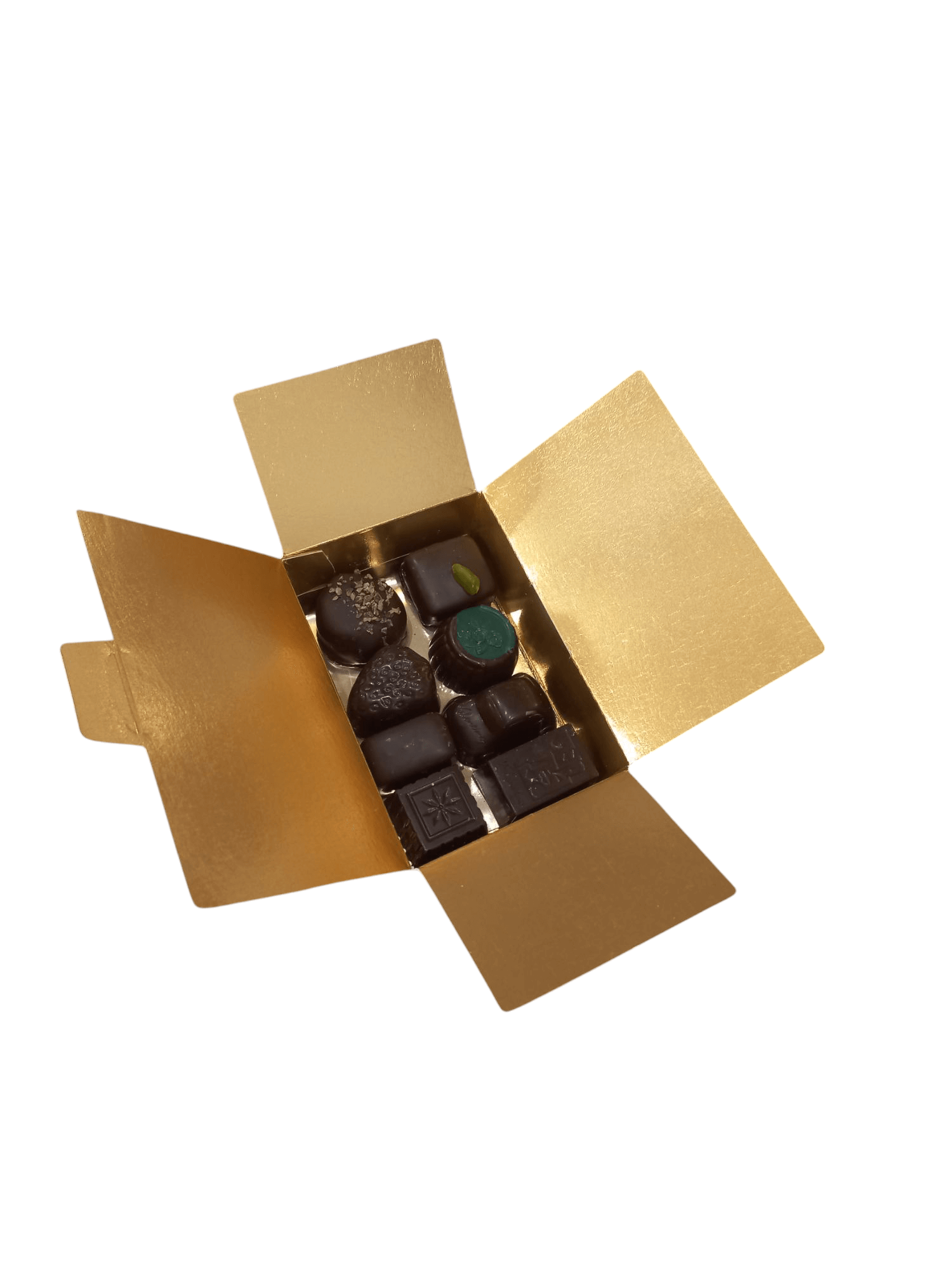 Piękna kompozycja pysznych belgijskich pralin wegańskich zamknięta w klasycznej czerwonej balotynce.