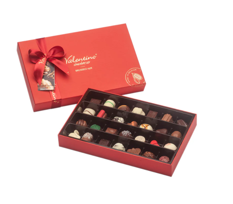 Bombonierka mieści w sobie 28 belgijskich czekoladek.