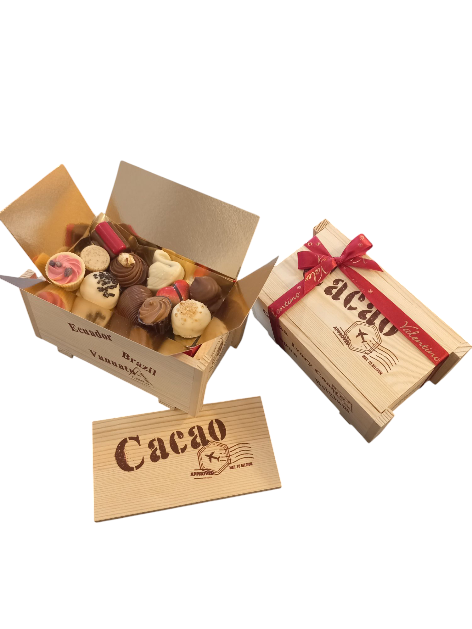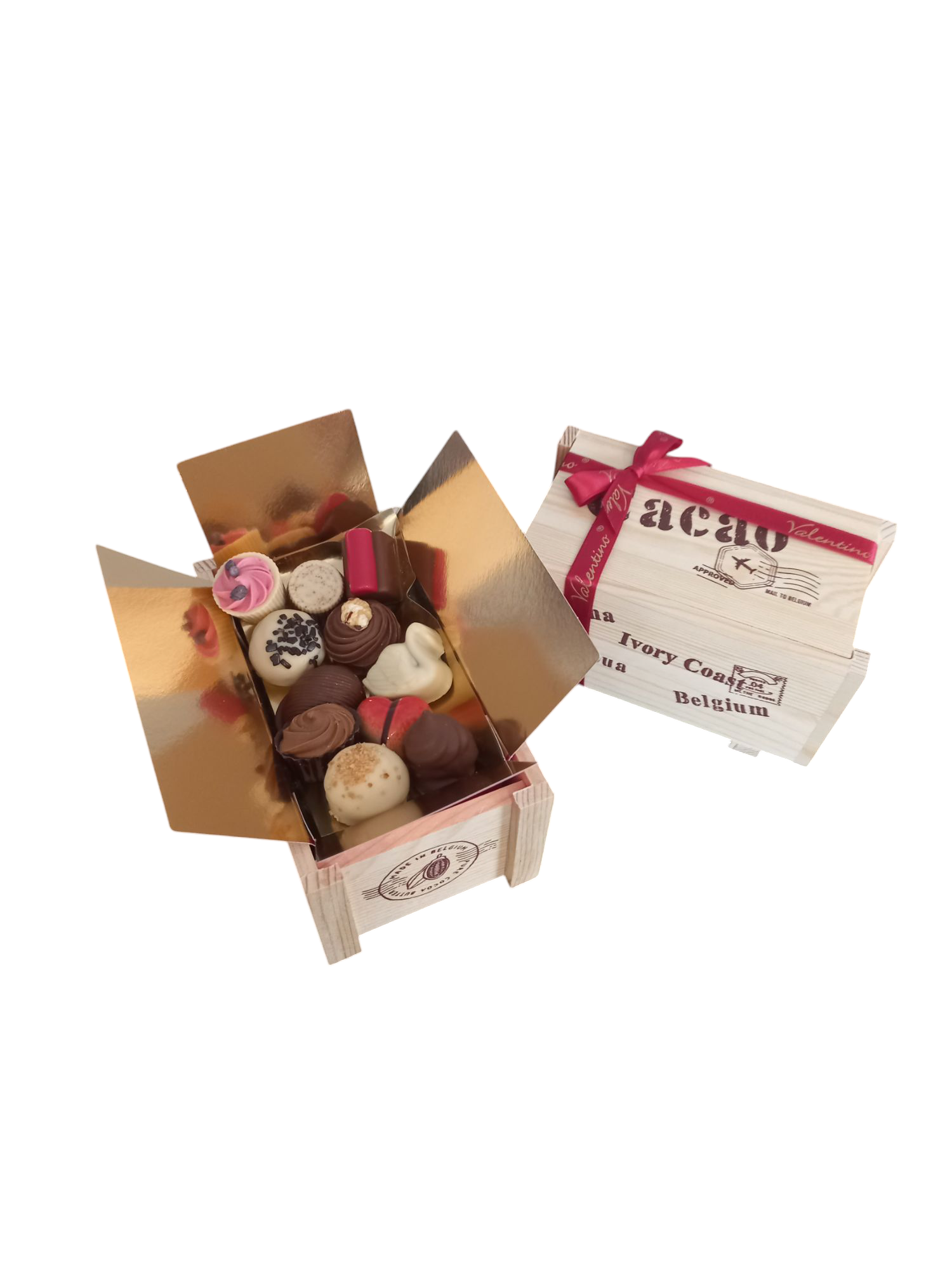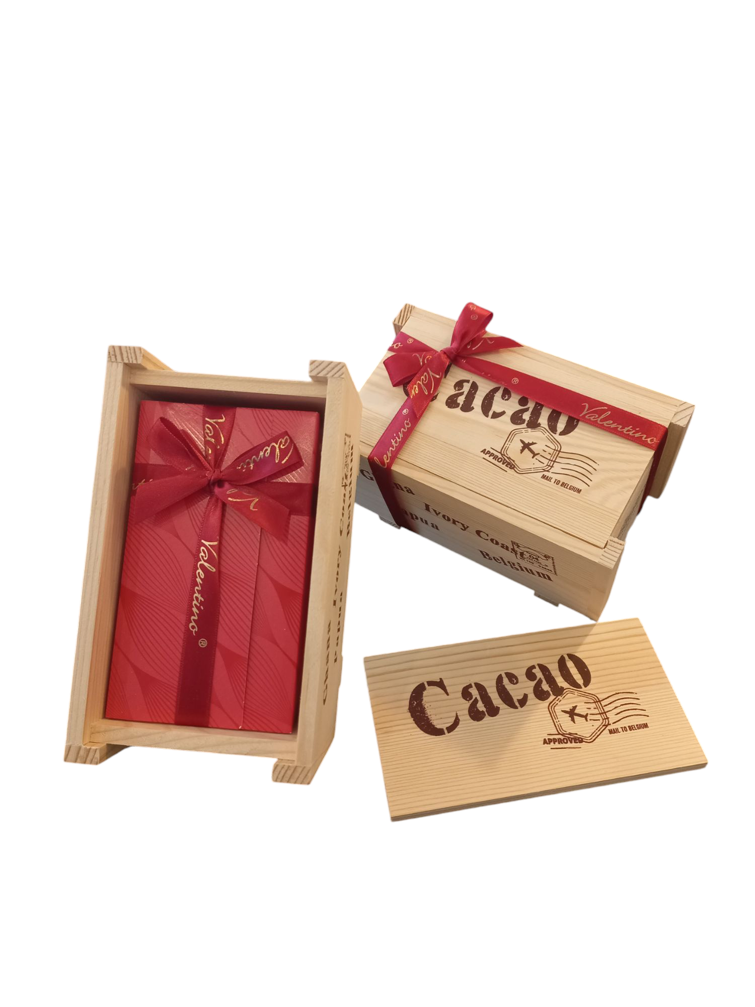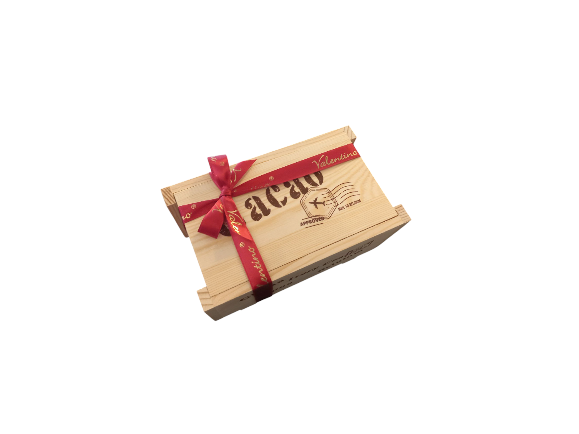 Oryginalna, drewniana skrzynka Valentino Chocolatier to ciekawa propozycja na słodki upominek dla wielbiciela czekolady.