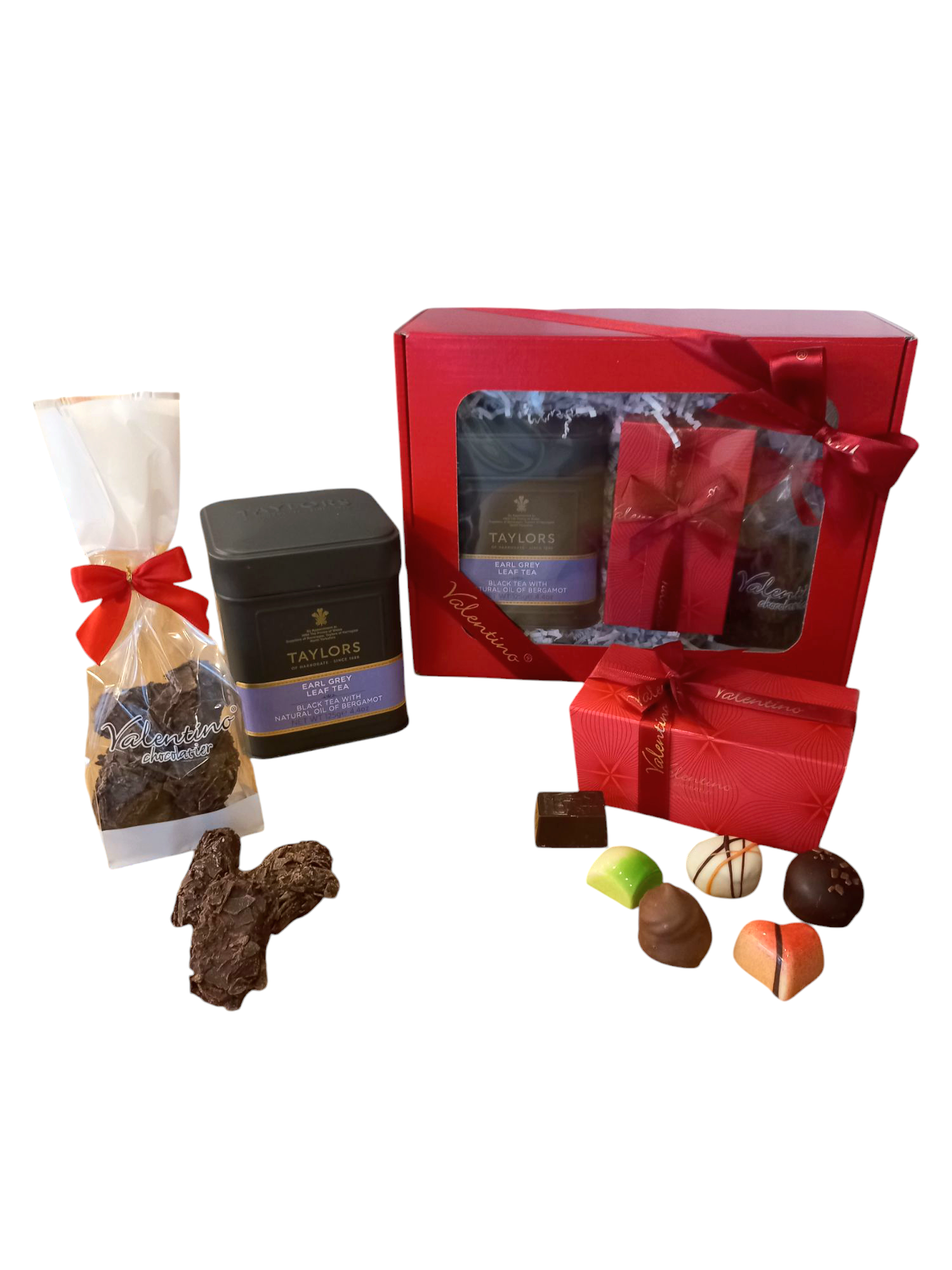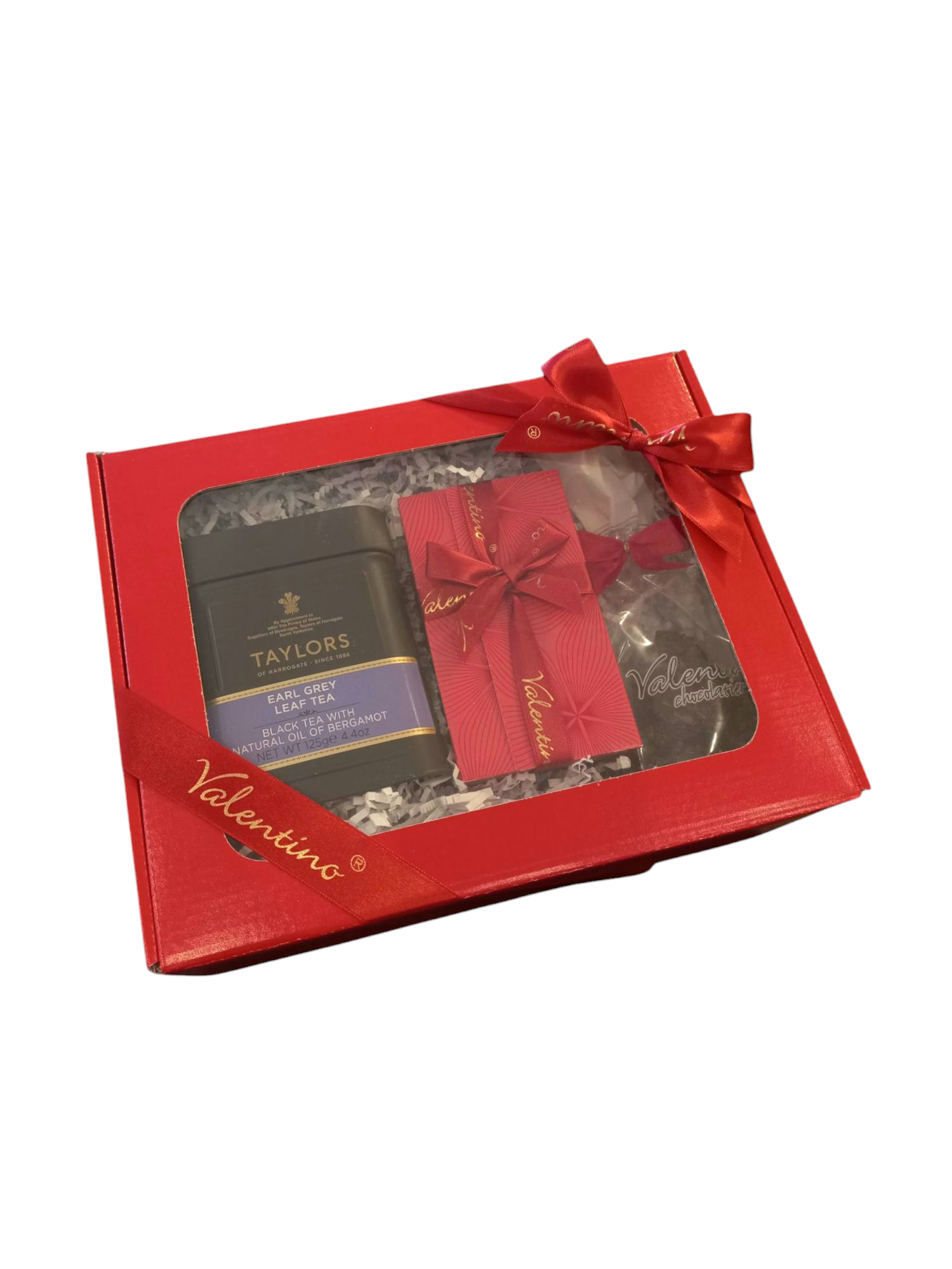 Kompozycja łącząca belgijskie słodycze z pyszną angielską herbatę umieszczona została w czerwonym pudełku z okienkiem, które odsłania jego wyjątkową zawartość. Całość prezentu ozdabia czerwona wstążka i piękna kokardka.