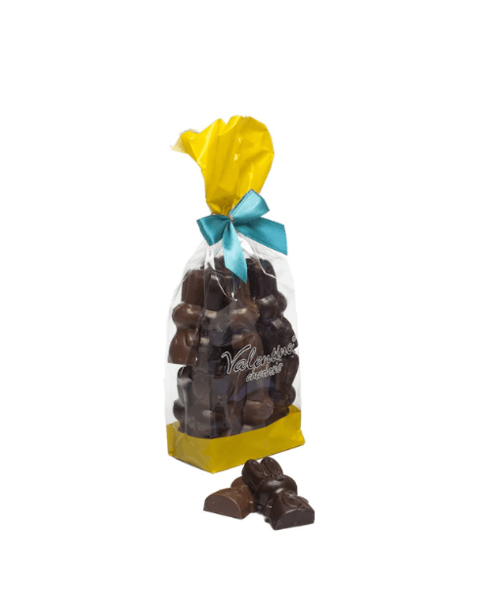 Zajączki z najlepszej belgijskiej, gorzkiej czekolady wykonane zostały ręcznie przez czekoladników Valentino Chocolatier. Dzięki najwyższej jakości składnikom są idealnym smakołykiem. Nie chcesz poprzestać na jednym 🙂