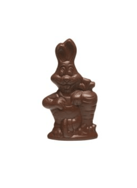 Figurka zajączka wielkanocnego z marchewką wykonana została z pysznej mlecznej, belgijskiej czekolady.