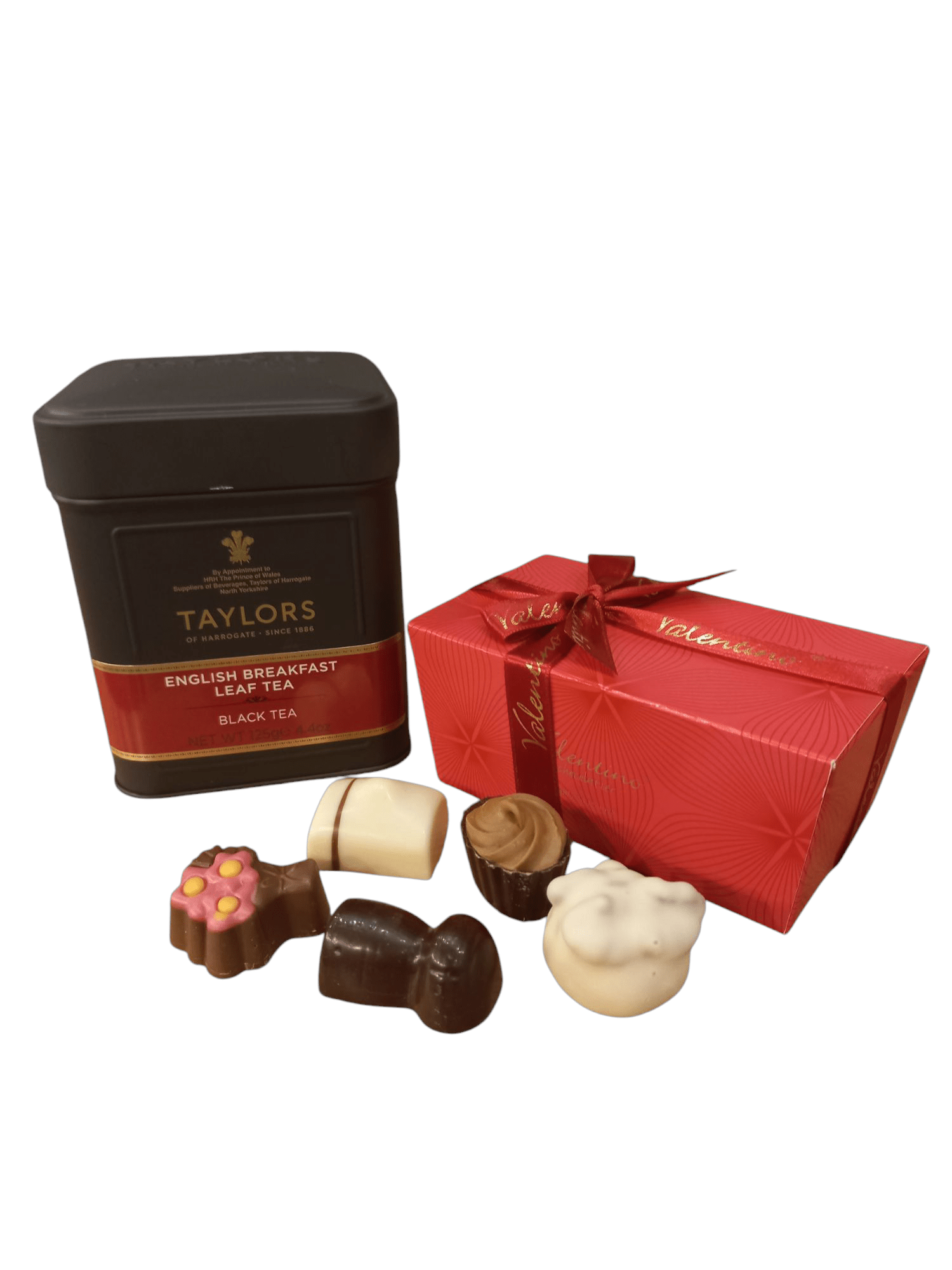 Zestaw prezentowy zawierający belgijskie słodycze i angielską herbatę, to idealna propozycja na oryginalny upominek na wiele okazji.