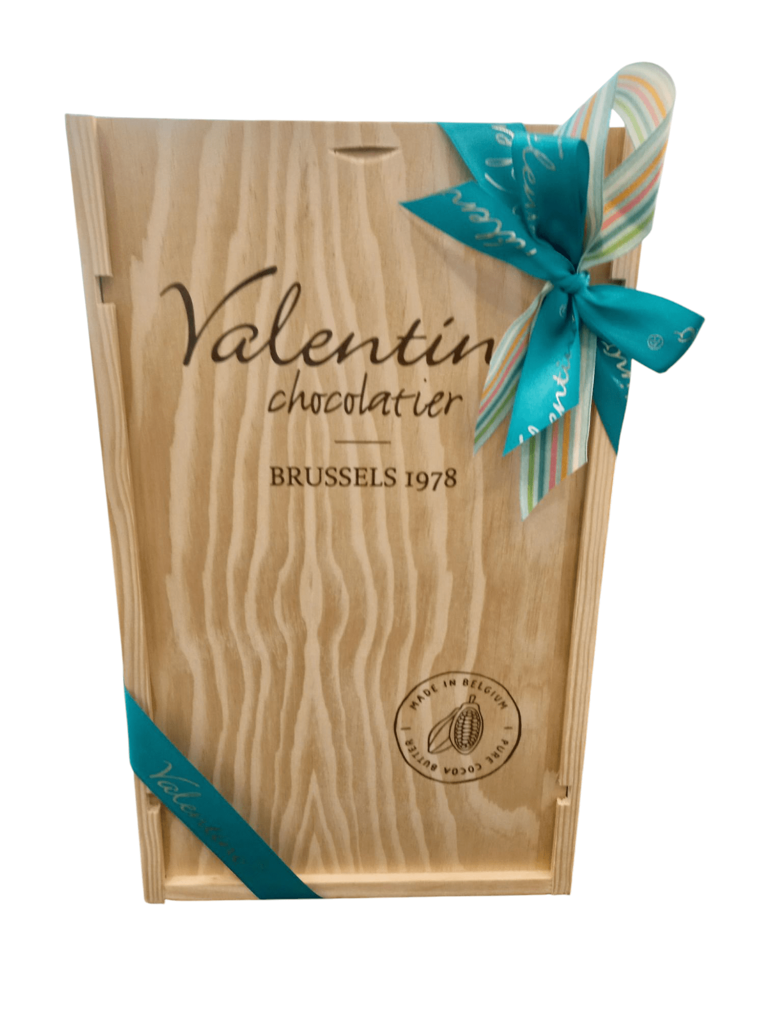 Elegancka drewniana skrzynka Valentino Chocolatier to ciekawa propozycja na oryginalny prezent dla wielbicieli belgijskiej czekolady oraz włoskiego wina i włoskiej kawy.